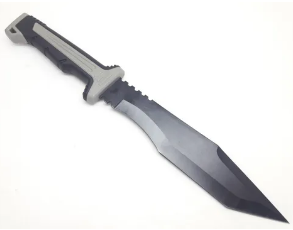 Lâmina grande com 24,5 cm em aço 440 bem afiada. Guarda dupla para dar mais firmeza e segurança durante o corte. Cabo emborrachado com formato anatômico.