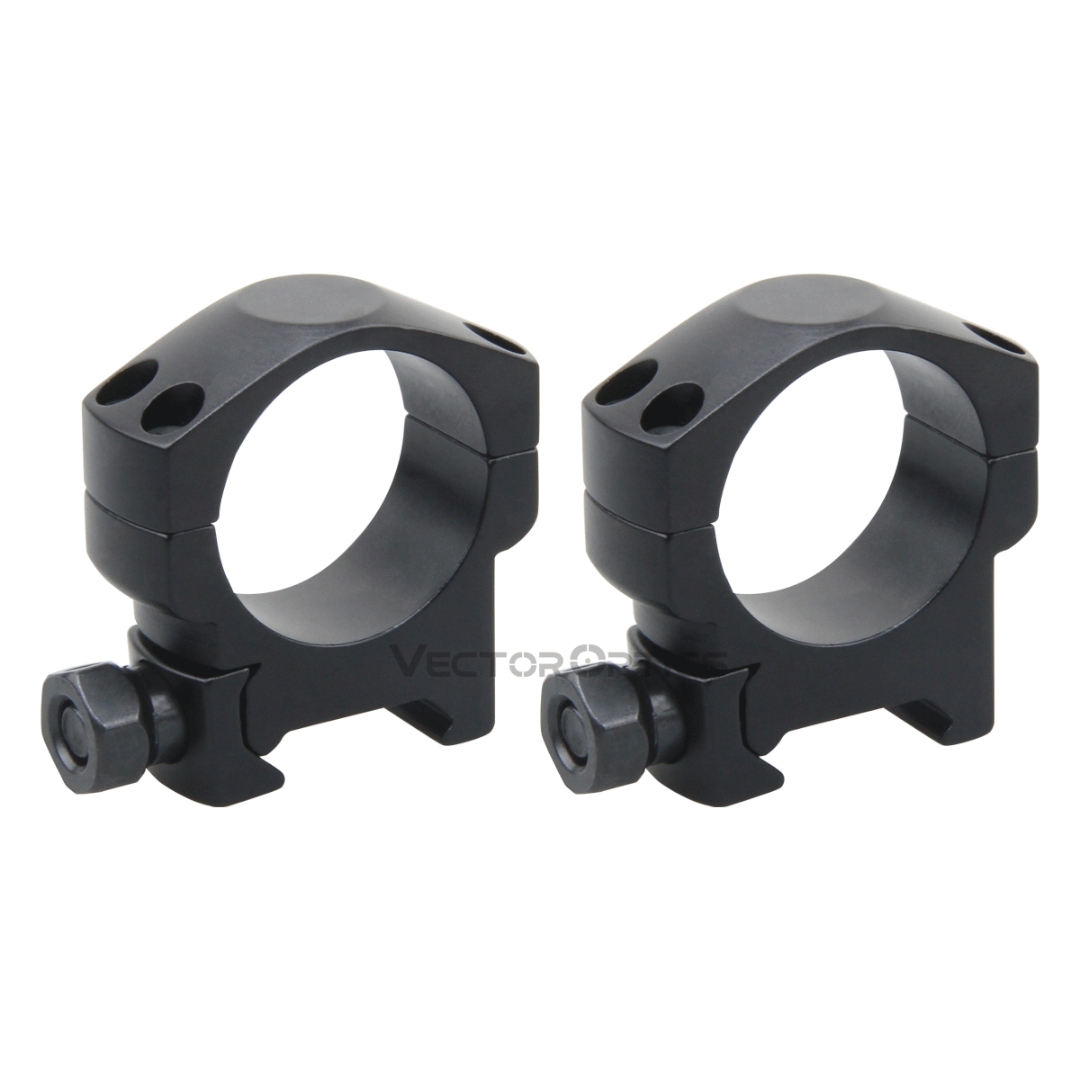 Anel de 30 mm de diâmetro, perfil baixo de 23 mm (0,9 polegadas) da base ao centro, 4 parafusos por anel, fabricado em CNC.