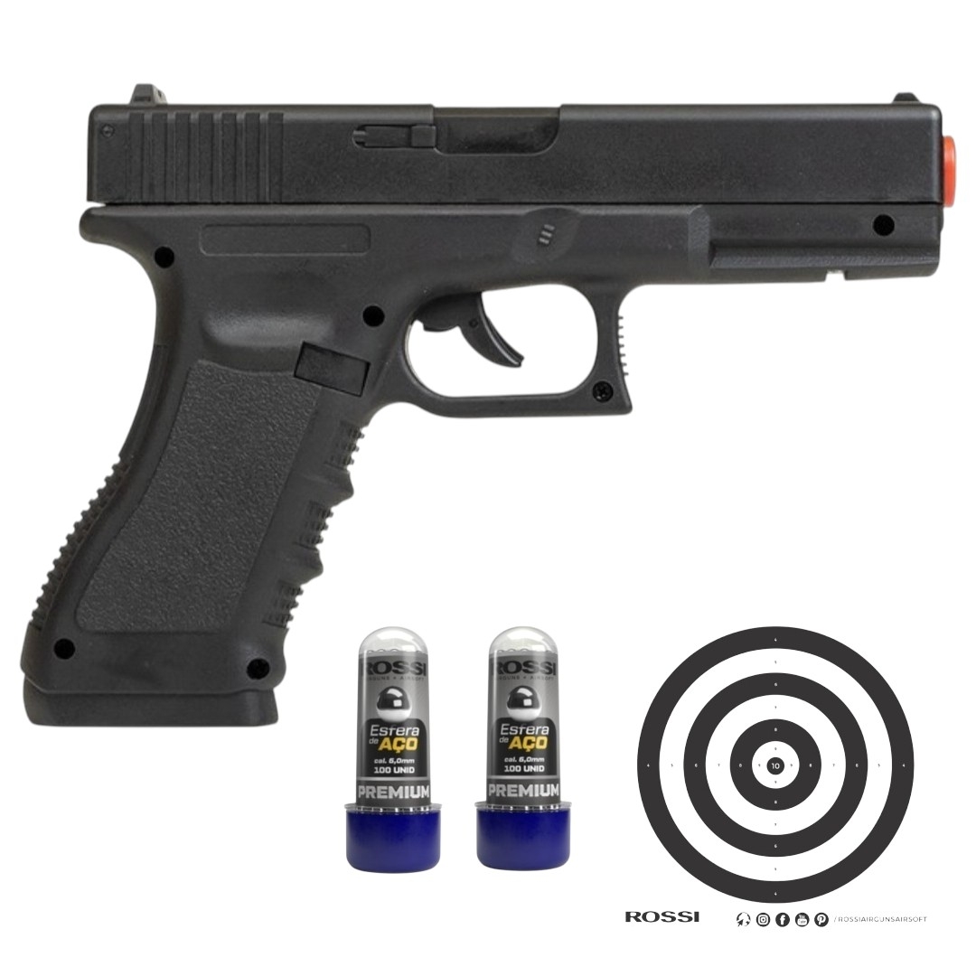 Pistola de Pressão Co2 Rossi G17 6.0mm + 200 Esferas + Alvos