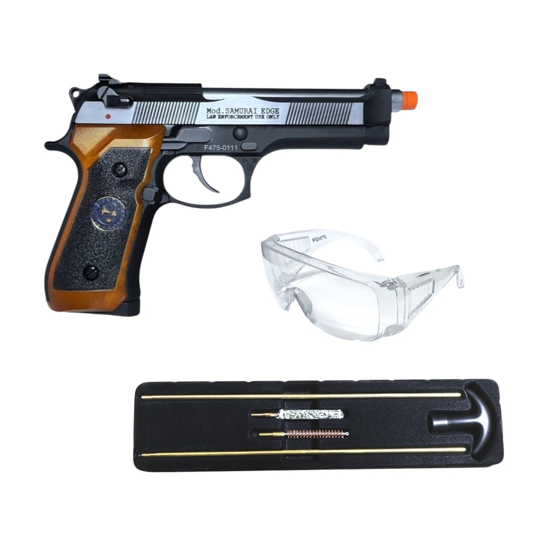 Pistola de Pressão Co2 WE 45-M92SPS Samurai Edge Biohazard Blowback 4.5mm + Kit Limpeza + Óculos